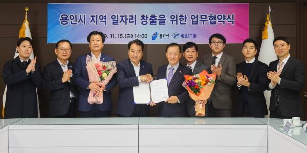 용인시는 15일 시장실에서 관내 기업인 지산그룹과 지역 일자리 창출을 위한 업무협약을 체결했다.