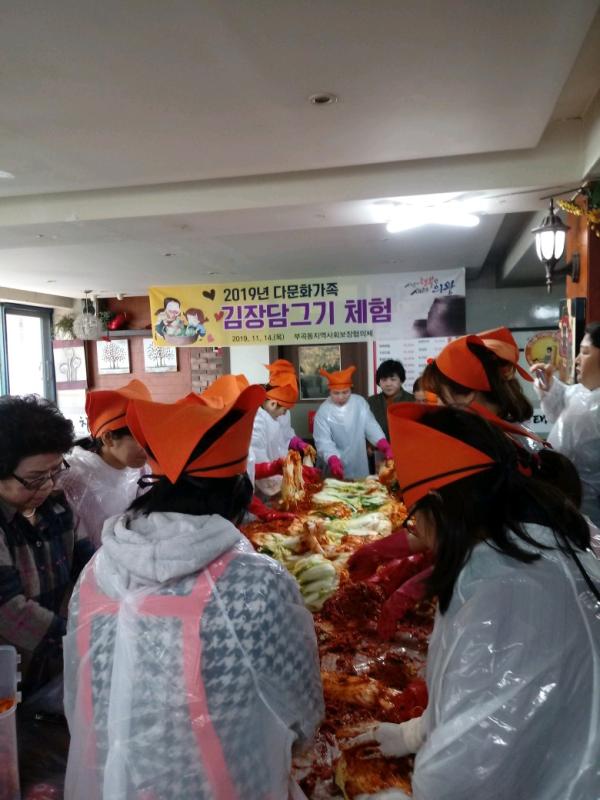 의왕시 부곡동지역사회보장협의체는 지난 14일 관내에 거주하는 다문화가족 15가구를 초청해 김장담그기 체험행사를 진행했다.