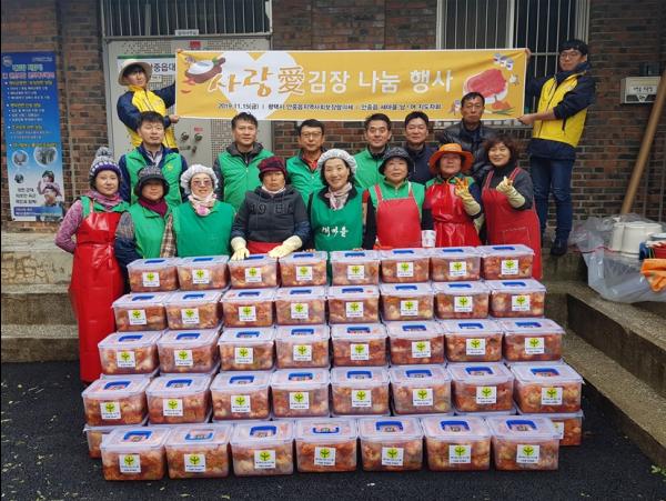 평택시 안중읍지역사회보장협의체와 새마을부녀회 남·녀지도자회는 15일 지역 내 저소득 120가구를 위한 사랑의 김장 나눔행사를 진행해 주위를 훈훈하게 했다.