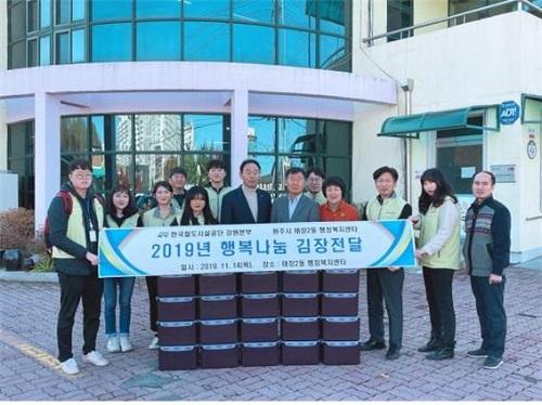 한국철도시설공단 강원본부는 지난 14일 독거노인 등 소외계층을 위한 행복나눔 김장김치 20박스를 태장2동 행정복지센터에 전달했다.