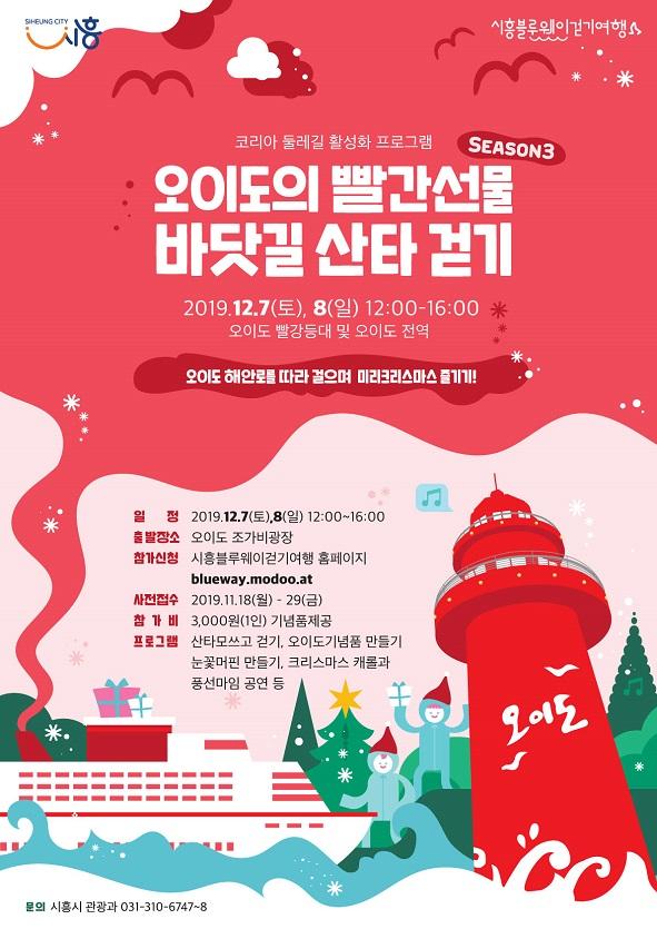 시흥시는 오는 12월 7일과 8일 이틀간 오이도 전역에서 진행되는 ‘오이도의 빨간선물 바닷길 산타 걷기 참가자를 모집한다.