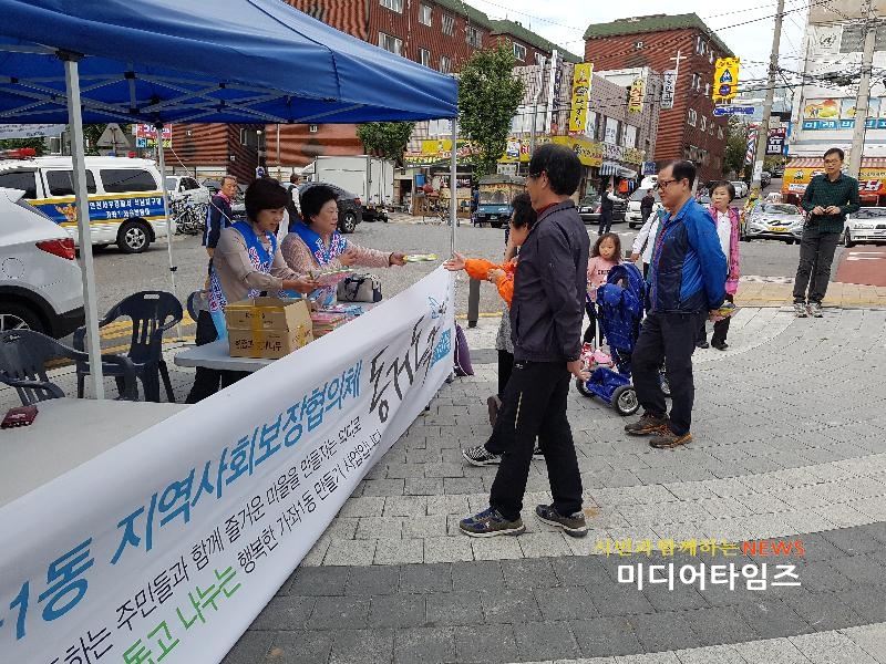 [미디어타임즈=문상수 기자]인천 서구 가좌1동 지역사회보장협의체(동장 김원상, 민간위원장 이지학)에서는 지난 10월 22일(토) 가좌1동에서 열린 제4회 감중공원 열린 음악회에 맞춰 찾아가는 복지서비스를 강화를 위한 ‘동거동락’ 지역사회보장협의체 홍보부스를 운영하였다. 많은 지역주민이 모인 열린 음악회에 맞춰 홍보활동을 펼친 지역사회보장협의체는 그 동안의 운영 활동을 알리고, 주변에 도움이 필요한 이웃의 발굴을 독려하였으며, 다양한 복지상담 및 지역자원(후원업체) 발굴을 위한 홍보활동을 추진하였다. 이지학 공동 위원장은 “아직도 우리 주변에는 도움이 필요한 이웃이 많이 있다.”며, “이웃이 이웃을 돕는 행복한 가좌1동을 만들기 위해 지역사회보장협의체가 항상 주민들의 곁에서 힘이 되겠다.”고 전했다.
