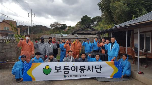 북평동행정복지센터는 지난 15일 동해항운노동조합 보듬이봉사회에서 태풍 미탁 피해 이재민 중 홀몸 어르신 가구에 대해 연탄 나눔 활동을 펼쳤다고 전했다.