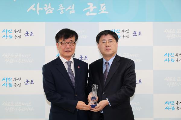 군포시가 지역 내 저소득 노인세대, 취약계층 등 약 350세대의 의료 복지 보장을 위해 매월 건강보험료를 대납한 것과 관련 국민건강보험공단으로부터 ‘건강보험료 지원 우수기관’으로 선정돼 감사패를 받았다.