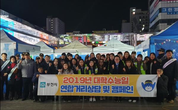 부천시는 대학수학능력시험이 있었던 지난 14일 부천역 마루광장에서 연합거리상담 및 캠페인을 실시했다. 수능일 청소년 탈선 우려에 대비해 우범 지역을 순찰하고 상담·체험활동·성교육 등 다양한 프로그램을 진행했다.