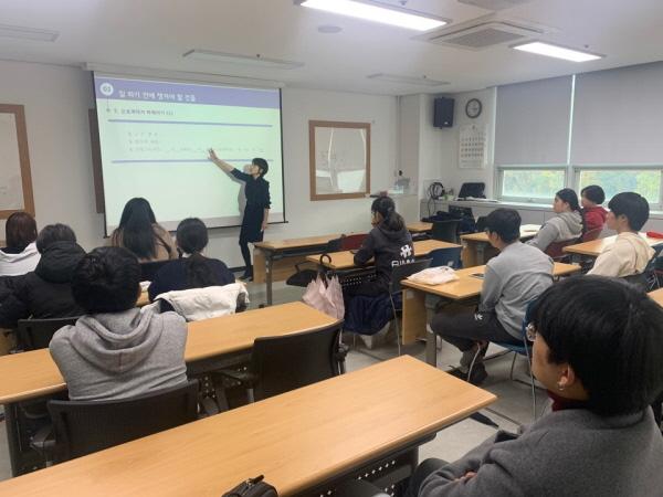 이번 교육은 매월 1회 정기적으로 운영하는 우리들의 아지트‘밥 먹고 놀자’11월 프로그램으로 추진됐으며 현재 근로 중이거나 근로 예정 중인 학교밖 청소년 13명을 대상으로 진행됐다.