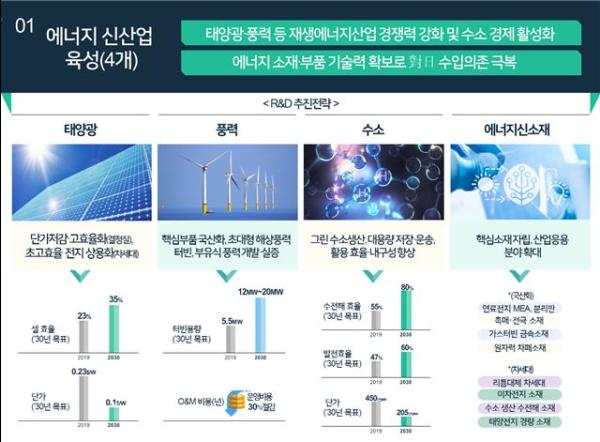 대형·장기 프로젝트, 실증연구, 안전관리, 보급연계 중심으로 에너지 기술개발 체계를 개편해, 산업적 파급효과가 큰 분야에 국가적 역량을 결집한 대형·중장기 플래그쉽 프로젝트를 추진하고 수요-공급기업이 공동 연구하고 공급기업이 개발한 제품을 수요기업이 실증·검증, 구매하는 수요연계형 R&D를 강화한다.