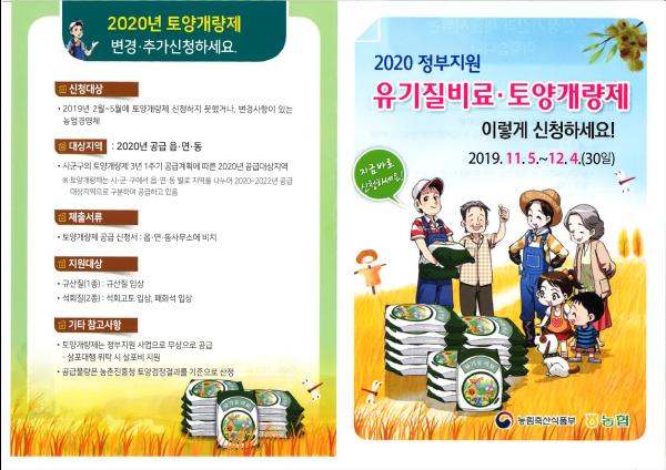 유기질비료 지원 사업은 농림축산 부산물의 재활용과 자원화를 통해 토양환경 보전 및 지속가능한 친환경 농업 육성을 위해 추진하는 친환경 농자재 지원사업의 일환이다.