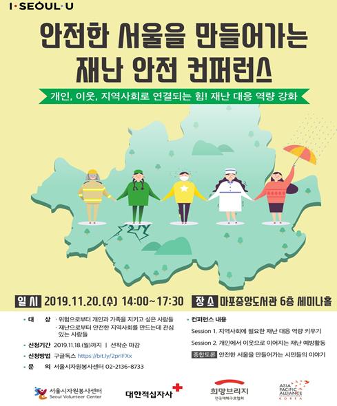이번 컨퍼런스는 서울시자원봉사센터와 함께 민간 재난 전문 기관인 대한적십자사, 희망브리지 전국재해구호협회, 에이팟코리아가 공동 주최한다.