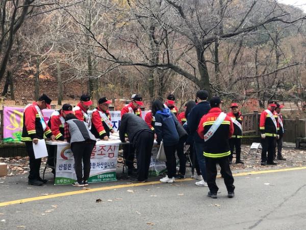 동두천시는 지난 17일 ‘제284회 안전점검의 날’과 가을철 산불조심기간을 맞이해 소요산에서 ‘가을철 산불예방 캠페인’을 벌였다. 이날 캠페인에는 산불예방 어깨띠를 착용한 산불 진화대원 30여명이 등산객들을 대상으로 산불예방 동참 서명을 받고 산불조심 기념 펜과 미세먼지마스크 등을 배부하며 두 시간 동안 진행됐다.