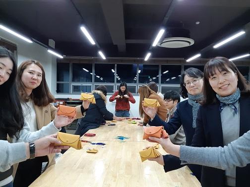 이번 공방체험은 아프리카돼지열병으로 인해 지난 9월부터 지역 내 모든 축제가 취소되어 침체된 상권에 일조하고 직원들의 사기진작 차원에서 마련된 것으로 20명의 직원들이 보산동 J식당에서 저녁식사 후 인근 가죽공방에서 카드지갑을 만드는 시간을 가졌다.