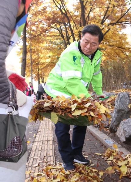이 날 박 시장은 시민들과 함께 가을철 낙엽이 많이 발생하는 하안동 하안사거리 일대를 깨끗이 청소하고 수거된 낙엽을 대형마대에 담은 후 수거차에 싣는 작업까지 함께 했다.