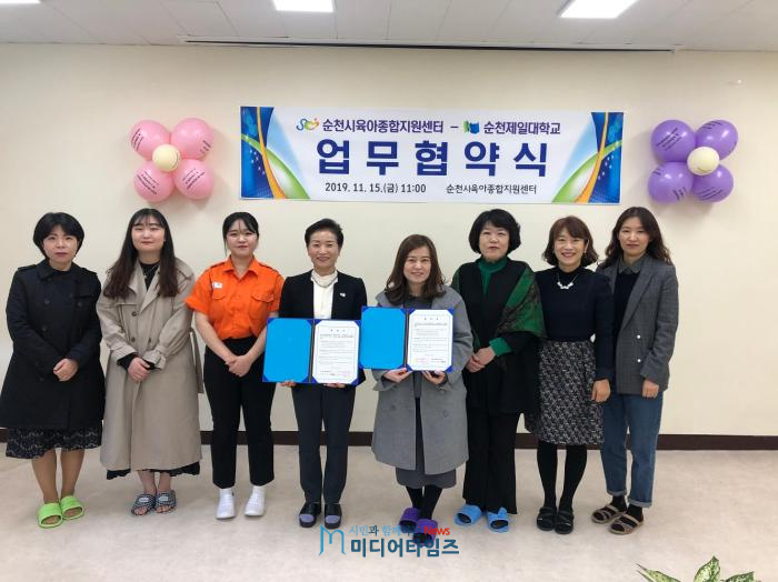 순천시육아종합지원센터와 순천제일대학교(총장 안효승)는 지난 15일‘영유아 복지증진과 지역사회발전을 위한 상호협력’업무협약을 체결했다.