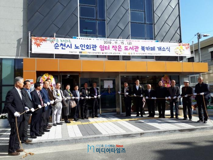 순천시에서는 지난 15일 순천시 노인회관 1층에 쉼터 작은도서관 북카페를 설치하고 개소식을 가졌다고 밝혔다.