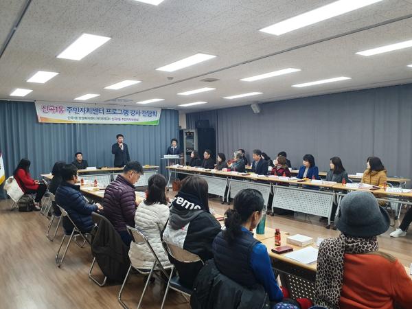 의정부시 신곡1동 행정복지센터는 지난 14일 행정복지센터 3층 다목적실에서 주민자치센터 문화프로그램 운영 활성화 방안과 프로그램 운영의 노하우 및 아이디어를 논하기 위한 강사 간담회를 개최했다.