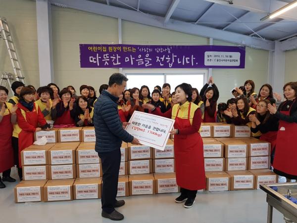 이날 연합회 소속 국공립·민간·가정·법인·직장어린이집 원장 50여명이 참여해 1700kg 상당의 김치 담갔다.