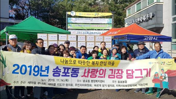 14일에는 영하 3도의 한파에도 불구하고 이웃을 사랑하는 뜨거운 마음으로 무장한 송포동 새마을부녀회·바르게살기협의회·주민자치위원회·지역사회보장협의체 등 각 직능단체 회원 및 주민이 참여해 김장 담그기 행사를 실시했다. 이렇게 만들어진 김치 300포기는 관내에 도움이 필요한 저소득층 및 경로당 100곳에 전달됐다. 행사에 자원봉사자로 참여한 주민은 “평소 이웃을 위해 봉사하고 싶다는 마음은 많았지만 방법을 몰라 실행하지 못했다”며“이번 기회를 계기로 더욱 열심히 주변 이웃을 살피겠다”고 말했다.