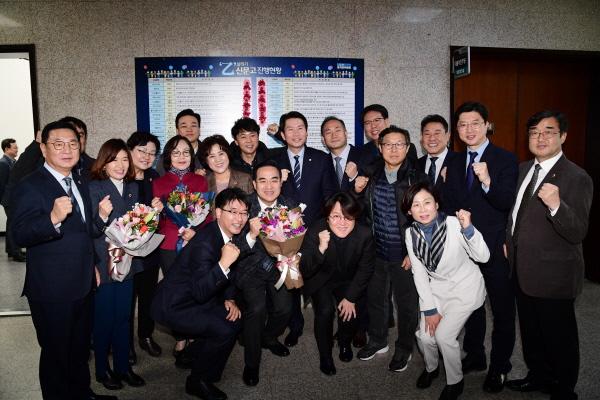 이해찬 더불어민주당 대표와 이인영 원내대표, 박홍근 을지로위원장이 참석한 가운데 서울시의회 더불어민주당 민생실천위원회는 ‘상생 꽃 달기 행사’에 함께 했다.