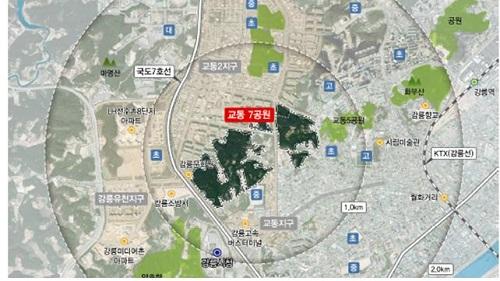 시에서는 제3자 제안 공모를 통해 지난 2월 28일 ㈜교동파크홀딩스를 우선협상대상자로 선정한 후 주민설명회, 공원조성계획에 대한 도시계획위원 심의을 거쳐 10월 25일 강릉시와 민간공원추진자가 교동7 공원조성사업을 공동으로 추진하고 모든 사업 비용은 민간공원추진자가 부담한다는 내용의 협약서를 체결했다.
