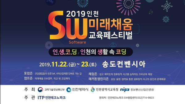 인천시가 인천시교육청과 공동으로 오는 22일부터 23일까지 이틀간 송도컨벤시아에서 ‘2019 인천 SW미래채움 교육 페스티벌’을 개최해 4차산업혁명시대 미래사회에 소프트웨어 능력과 생활 속 코딩 실천의 중요성을 알린다.