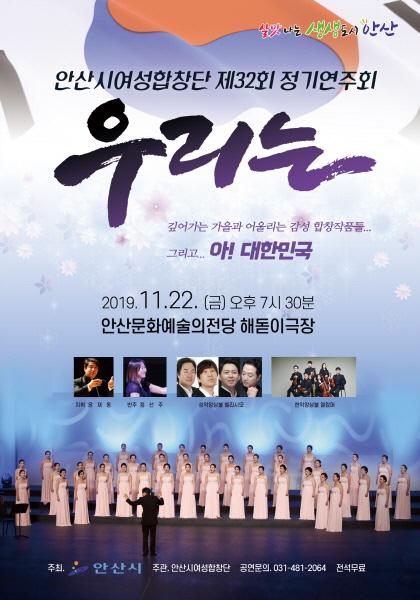 안산시여성합창단은 오는 22일 오후 7시30분 안산문화예술의전당 해돋이극장에서 ‘우리는…’이라는 주제로 ‘제32회 정기연주회’를 개최한다고 19일 밝혔다.