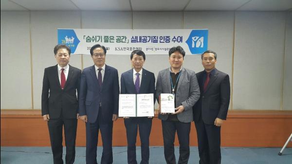 ‘숨쉬기 좋은 공간 실내공기질 인증’이란 한국표준협회와 연세대학교가 공동개발한 “i숨지수 모델”을 활용해 기업 및 단체의 시설에 대해 실내공기질과 관리수준을 객관적으로 평가하고 우수성을 인증하는 제도이다.