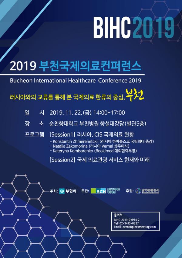 부천시가 주최하고 순천향대 부천병원이 주관하며 경기관광공사가 후원하는‘2019 부천국제의료컨퍼런스’가 오는 22일 오후 2시 순천향대 부천병원 향설대강당에서 열린다.
