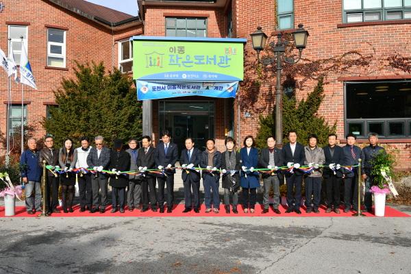 이동작은도서관에서 열린 개관식에는 박윤국 포천시장, 강준모 포천시의회 부의장, 김정진 이동작은도서관장 및 이동면 기관·단체장 등 50여명이 참석했다.
