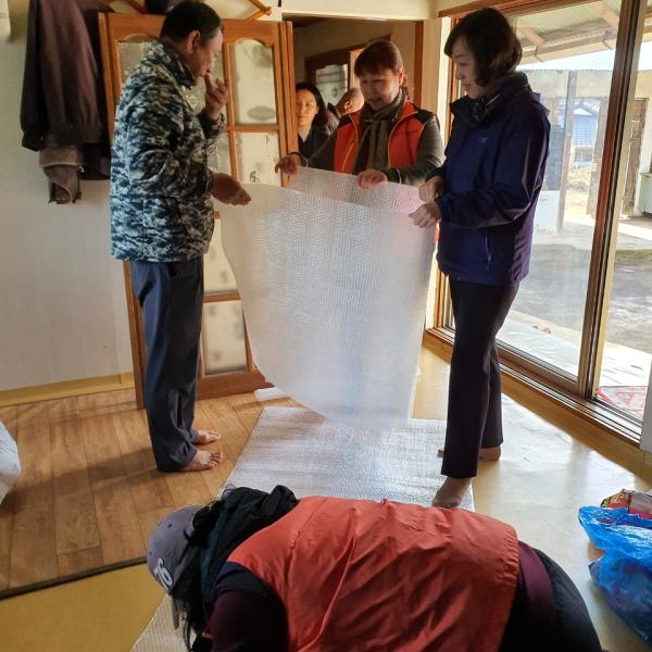 꽃고을 어르신 단열 물품 설치 행사는 저소득층 노인 등 취약계층 10여 가구에 문풍지와 단열용 에어캡을 집안에 설치하는 행사다.