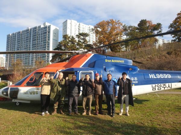 이날 헬기 예찰에는 남양주시 관계 공무원 및 유해야생동물 피해방지단장과 함께 했으며 멧돼지 서식지 및 이동경로를 파악해 포획단원들에게 전달하고 확성기를 통해 주·야 등산객, 임산물채취자, 등산로 이외 등산객을 대상으로 총기포획 안전사고 예방 방송을 했다.