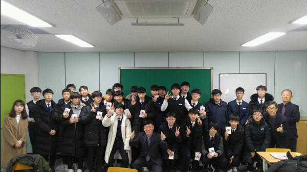 인천시교육청은 하반기 학교폭력예방 캠페인 ‘같이가치단풍길걷자’ 우수 참여 학급으로 선정된 계산고등학교 1학년 7반 교실을 19일 찾아가 기념품을 전달했다.