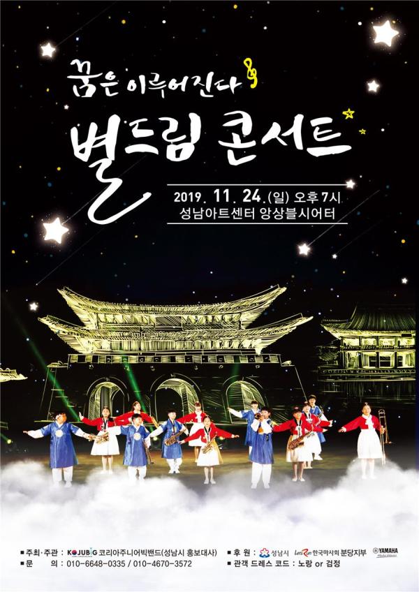 성남시 홍보대사로 활동하고 있는 코리아주니어빅밴드가 오는 24일 오후 7시 분당구 이매동 성남아트센터 앙상블시어터에서 ‘꿈은 이루어진다 별 드림 콘서트’를 개최한다고 밝혔다.
