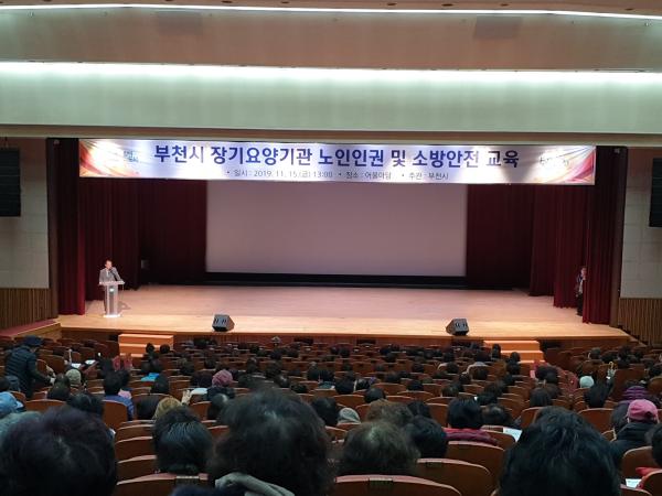 부천시는 지난 15일 장기요양기관 운영자 및 종사자 450여명을 대상으로 부천시청 어울마당에서 노인 인권 및 소방안전 교육을 했다.