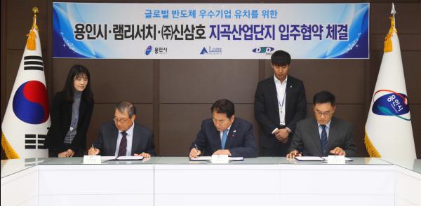 이날 협약식엔 백군기 용인시장을 비롯해 입주희망기업인 램리서치코리아의 서인학 회장, 김성호 사장, 지곡일반산업단지 사업시행자인 ㈜신삼호의 김언식 회장 등이 참석했다.
