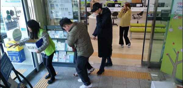 1층 민원실에서의 화재발생을 가상 상황으로 설정해 상황전파, 119신고 주민대피유도, 초기진압 순으로 실시하며 신속한 대응과 응급 상황 시 현장대처 능력을 키우는데 집중했다.