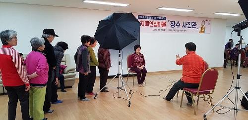 시흥시는 지난 19일 죽율 치매안심마을에서 어르신들을 대상으로 장수를 기원하는 사진을 촬영하고 액자에 담아 전달하는 장수사진관 프로그램을 운영했다.