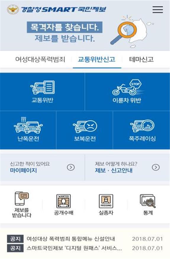 국민이 이륜차 법규위반을 좀 더 편리하게 공익신고할 수 있도록 ‘스마트 국민제보’ 앱 화면에 이륜차 신고 항목을 별도로 신설한다.
