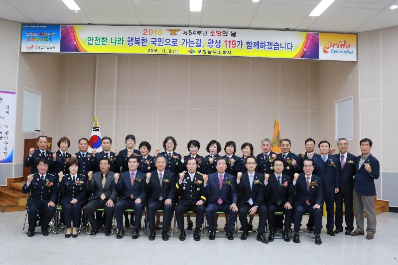 이날 행사는 올해 전국소방동요대회에서 최우수상을 수상한 연일 백합유치원 어린이 합창단의 축하공연으로 시작되었으며 평소 투철한 사명감과 봉사정신으로 맡은바 직무를 성실히 수행하고 소방행정 발전에 이바지한 공이 크다고 인정된 소방공무원, 의용소방대원 및 민간·단체 등 56명에게 표창이 수여되었다.