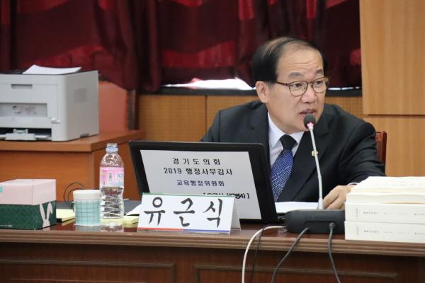 다음으로 유근식 의원은 학교공사의 문어발식 공사시행을 지적했다. “석면공사, 내진공사, 외벽공사, 화장실공사, 방수공사도 있고 급식공사, 창호공사등 학교에서 많은 공사를 하고 있다. 그런데 신설학교 보면 그런 것이 안전도 때문에 부분 부분별로 공사를 하다 보니까 예산도 부분부분별로 많이 들어간다”고 지적하며 “안전도만 일괄적으로 책정하지 말고 오래된 학교들은 심도있게 평가를 하고 리모델링할 때 장기적으로 어느 것이 타당성이 있는지 파악해서 신축·증축을 동시에 할 수 있게 했으면 좋겠다”며 공사에 들어가는 예산의 적정성과 효율성을 재고해 줄 것을 요청했다.