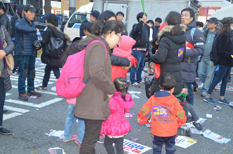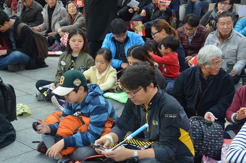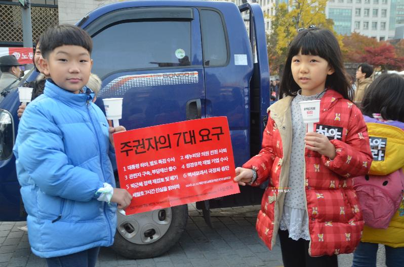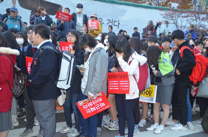 이날 집회는 어린이· 학생· 여성· 직장인 등 직업과 연령대는 매우 다양했다. 하지만 '朴 대통령의 퇴진'을 요구하는 목소리는 한결 같았고 질서 정연한 민주시민의 성숙함을 보였다.