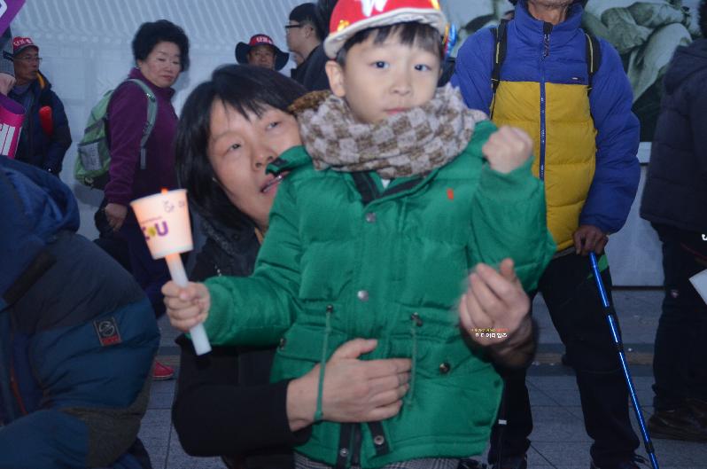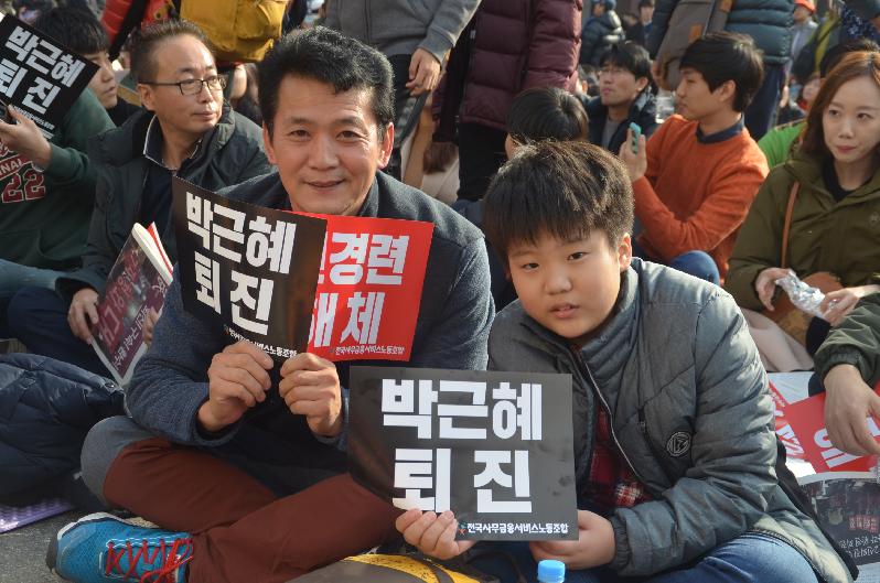 이날 초교 4년 아들과 함께 오전 6시경에 경남 하동에서 출발해 집회에 참가한 아버지는 "아들이 아직은 모르겠지만 아들이 나중에 성인이돼서 오늘의 역사를 돌이켜 봤을 때 아들에게 부끄럽지 않는 아버지가 되기 위해 집회에 참석했다"고 말했다.