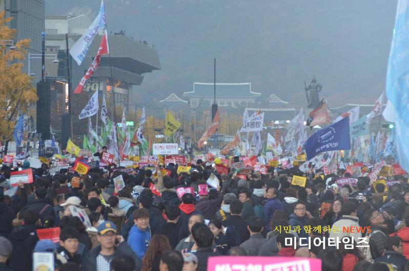 [미디어타임즈= 신정식 기자] 12일 광화문 일대에서 열린 ‘박근혜 정권 퇴진 ’3차 촛불 집회에 주최 측 추산 100만 명(경찰 추산 26만 명)이 모였다.