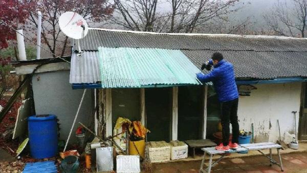 조종면지역사회보장협의체는 지난 16일 지붕 빗물 누수로 인해 어려움을 겪고 있는 저소득 홀몸어르신 박 할아버지댁을 방문해 조종면의 재능기부자 수기사 최진 상사의 도움으로 노후된 슬레이트 보수 및 설치, 누수방지를 위한 실리콘 작업 등 주거환경개선을 위한 원스톱 불편제로서비스를 제공했다.