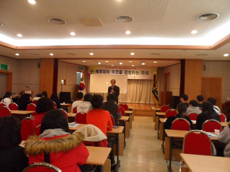 이는 가정 내 구성원 간 소통과 이해, 효정신, 밥상머리교육을 통한 행복한 가 정 공동체육성으로 나눔을 실천하는 가족사랑 가정교육 운동을 취지로 교육생 대표 동광중학교 황일상 조부윤 학생의 “가정새마을운동을 위한 우리의 약속”결의 낭독과 강사로 초청된 (일농)공동체사회연구소 김준기 소장의 ‘좋은 부모되기, 부부 간 대화법, 밥상머리교육, 소통하는 가족’이란 주제로 한 강연 그리고 참가한 학부모와 학생이 성남시새마을부녀회의 협조로 사랑의 빵만들기에 동참해 직접 구어낸 빵을 성남시한마음복지관에 후원하는 이웃사랑운동도 실천했다.