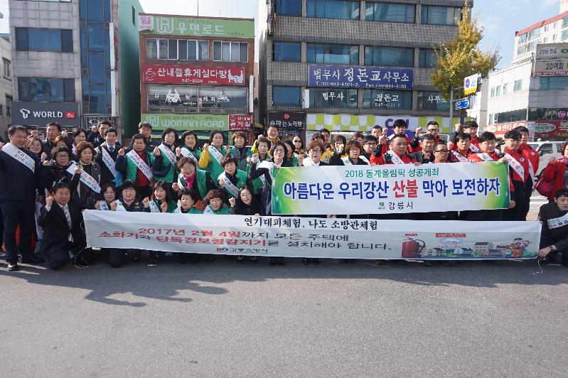 [미디어타임즈= 김형기 기자] 강릉시 재난안전과(과장 이희순)와 산림과(과장 이해균) 및 유관기관, 사회단체 80여명은 지난 11일 강릉 택시부 광장 및 중앙시장 일원에서 시민과 관광객, 차량 운전자를 대상으로 가을철 난방기구 화재예방 요령과 2018동계올림픽 성공개최를 위한 산불예방 캠페인을 펼쳤다.