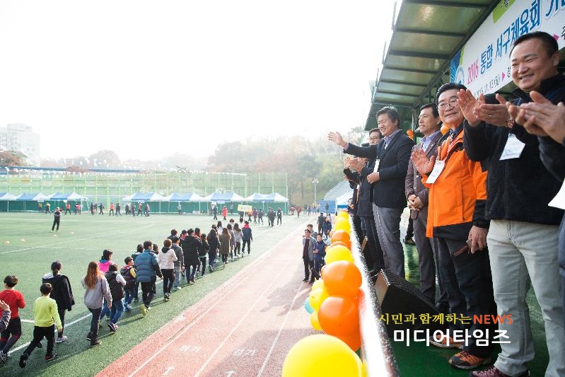 [미디어타임즈=문상수 기자] 지난 13일(일), 서곶근린공원 운동장에서『2016 통합 서구체육회 기념 한마당대축전』이 성대하게 열렸다. 이번 한마당 대축전은 서구체육회(회장 강범석)의 통합을 기념하는 뜻에서 치러졌으며, 1,500여명의 종목별 회원들이 한자리에 모여 4인 5각, 인간징검다리 등 교류와 화합의 뜻깊은 체육대회를 치르며 즐거운 시간을 가졌다. 서구체육회는 통합이전 (구)서구체육회와 서구생활체육회가 합쳐져 올 초 출범했으며, 앞으로 관내 체육인의 등대로서 서구체육의 발전과 활성화에 역량을 집중할 계획이다. 이날 개회식에 참석한 강범석 서구청장은 “그동안 체육활동 참여를 통해 서구를 빛낸 체육인들에게 감사의 인사를 전하며, 이번 행사를 통해 서구 체육인이 하나로 뭉쳐 힘을 합하는 계기가 되기를 바란다”고 말했다. 올해로 8회째를 맞은 이번 대회에서는 태권도협회가 종합우승을 차지하였으며, 그 뒤를 이어 볼링연합회가 준우승, 축구연합회가 3위를 차지하였다.