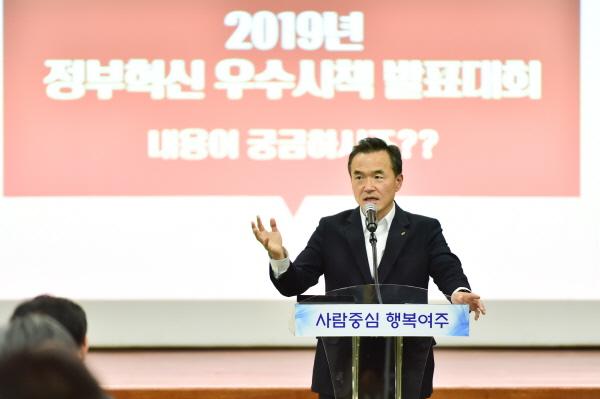 여주시는 지난 20일 시청 대회의실에서 200여명이 참석한 가운데‘2019년도 정부혁신 우수시책 발표대회’를 개최해 우수시책 공유의 장을 가졌다.