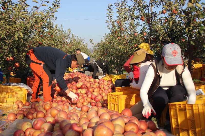 | 사과를 따서 선별작업을 하고 있다. <미디어 타입즈> |