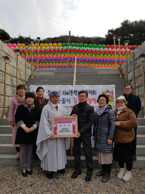 용인시 처인구 이동읍은 어비리 소재 동도사에서 21일 김장김치 15kg들이 40박스를 기탁했다고 밝혔다.