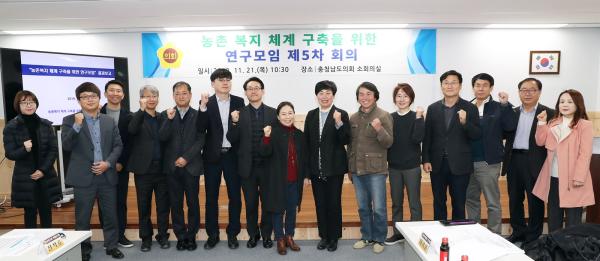 충남도의회 농촌복지 체계 구축을 위한 연구모임은 21일 도의회 소회의실에서 그동안의 연구성과를 갈무리하는 마지막 회의를 개최했다.